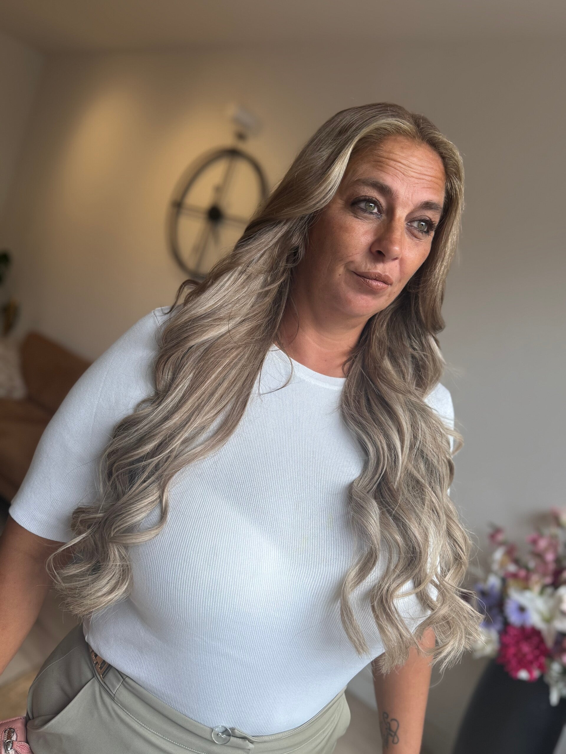 Elke set extensions wordt speciaal afgestemd op jouw haar. We kijken samen naar jouw haarkleur, structuur en gewenste volume. Zo zorgen we ervoor dat de extensions naadloos aansluiten en jouw natuurlijke haar versterken in plaats van verbergen.